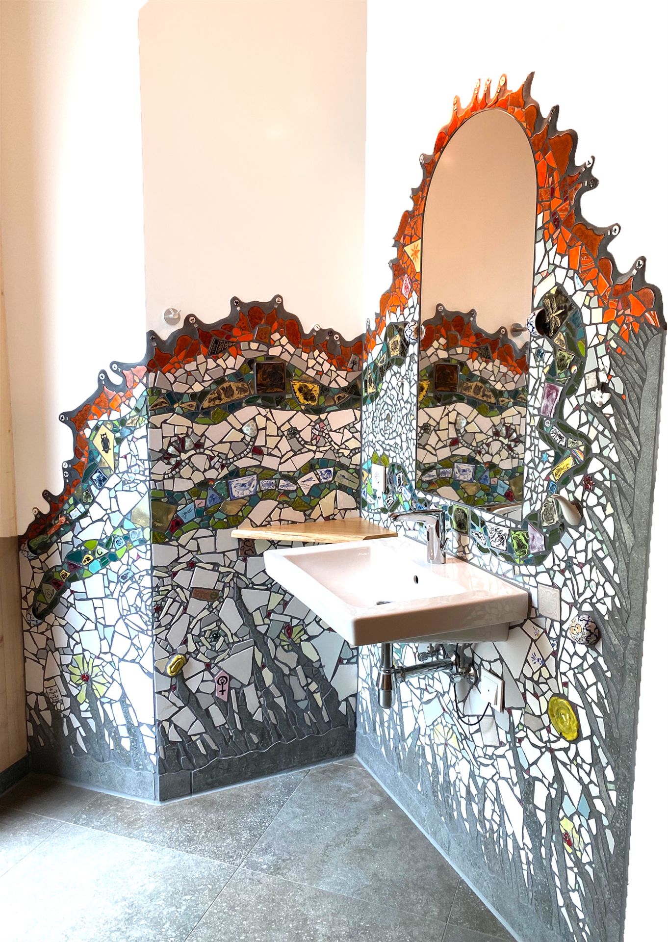 Wir sind Mosaizistinnen, ein erfahrenes Team, mobil und schnell. Unsere Arbeiten sind reich an Details und unsere handbemalten Fliesen machen sie einzigartig. Funktionale Flächen verwandeln wir so in lebendige. Aus Ort und Stimmung wird ein Motiv.
