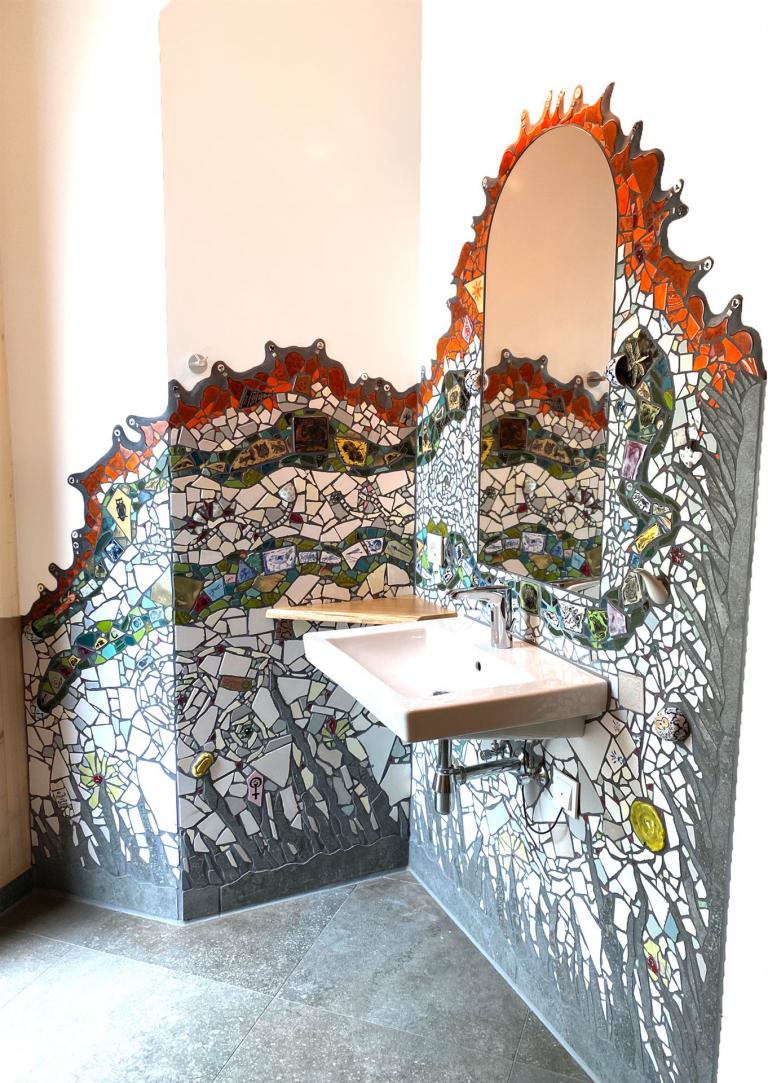 Auch Außenwände oder kleine Nischen eignen sich sehr gut für Mosaike.